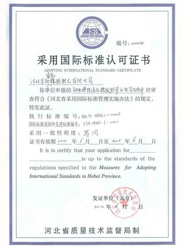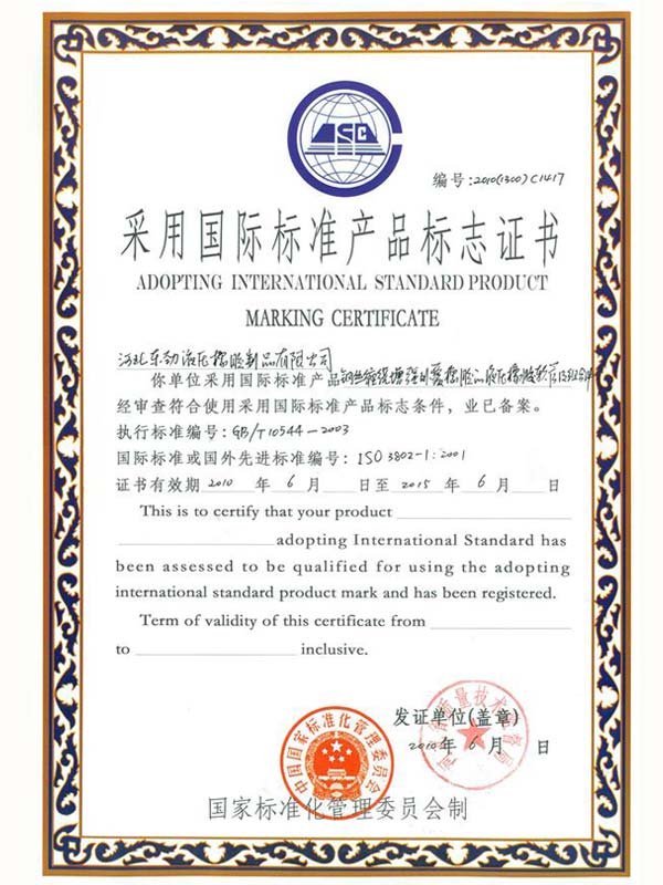• 鋼編管國際標(biāo)準(zhǔn)產(chǎn)品標(biāo)志證書
